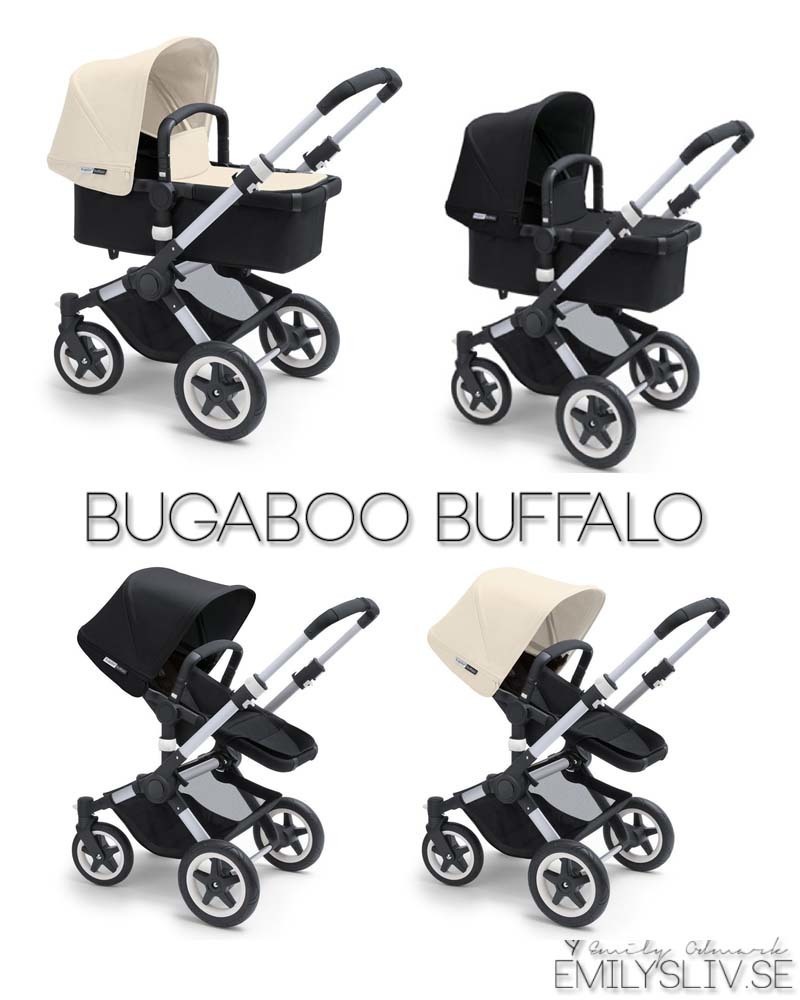 Efter mycket övervägande och efterforskande har vi äntligen kommit fram till att Bugaboo Buffalo är den vagn som passar oss bäst. Den vann på att den är så smidig att fälla ihop, den stora varukorgen, de större svängbara hjulen fram som även är låsbara, att den är lite högre, sufletten som man kan förlänga + att den är så otroligt snygg! 😉