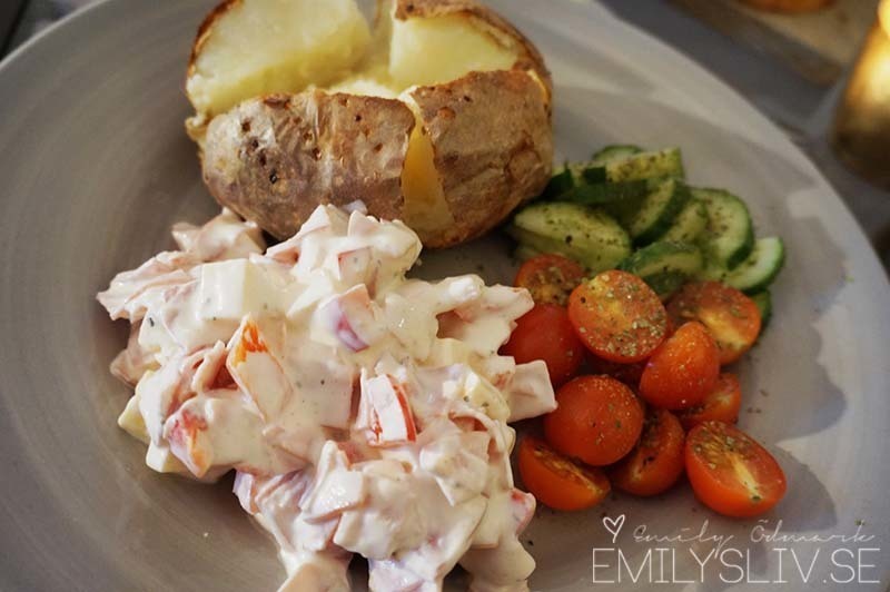Gårdagens middag; bakpotatis med ost & skink-röra.