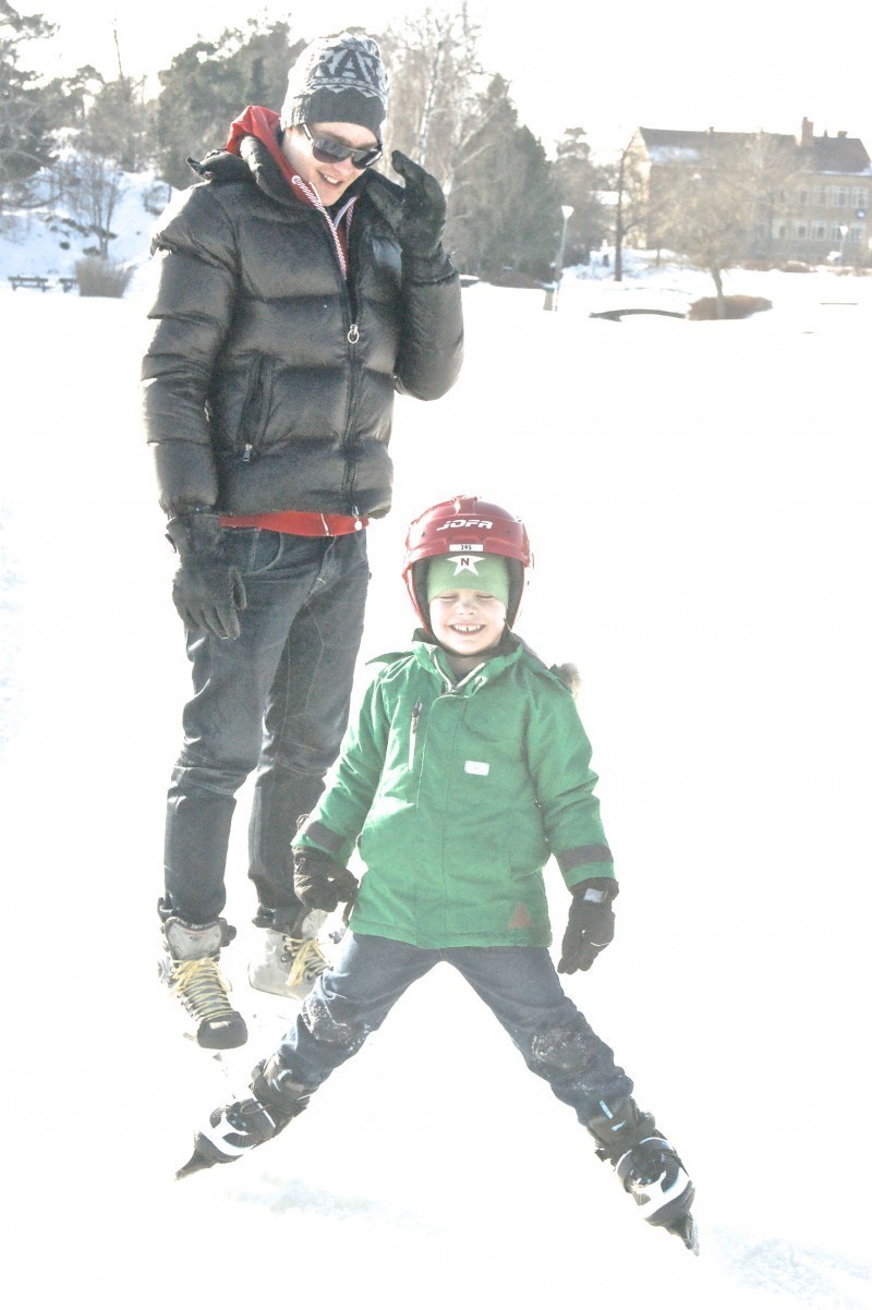Vilken härlig söndag vi fick ute i solskenet. Vi invigde skridskorna som lillebror fick av oss i julklapp, det var en riktigt hit. Åh vilket litet stjärnskott han kommer bli!