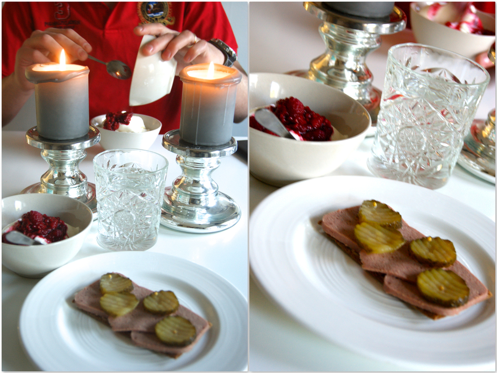 Meze-yogurth med varma hallon & finncrisp med leverpastej