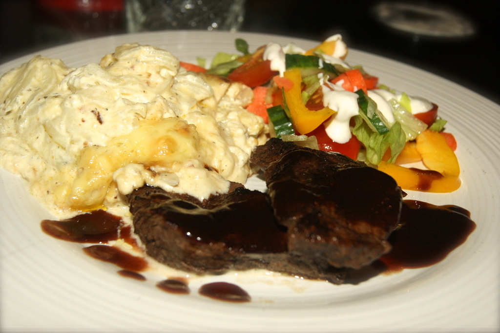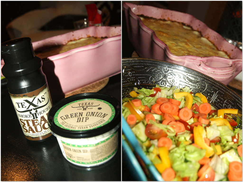 Rättikagratäng med rostbiff, sallad och goooda Texas-såser.