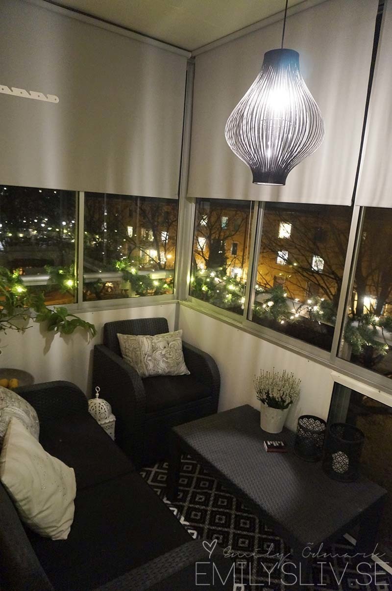 Idag åkte granslingan upp ute på balkongen. Tyckte vi behövde lite ljus där ute i mörkret, trots att vi till och med har taklampa där ute! haha 🙂 Julstjärnorna får vänta åtminstone två veckor till iallafall..