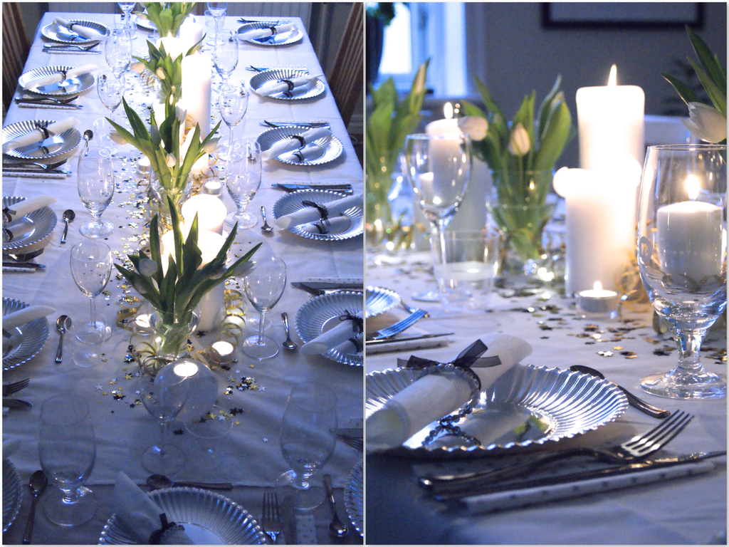 Temat för dukningen denna kväll blev: vitt, silver & guld.