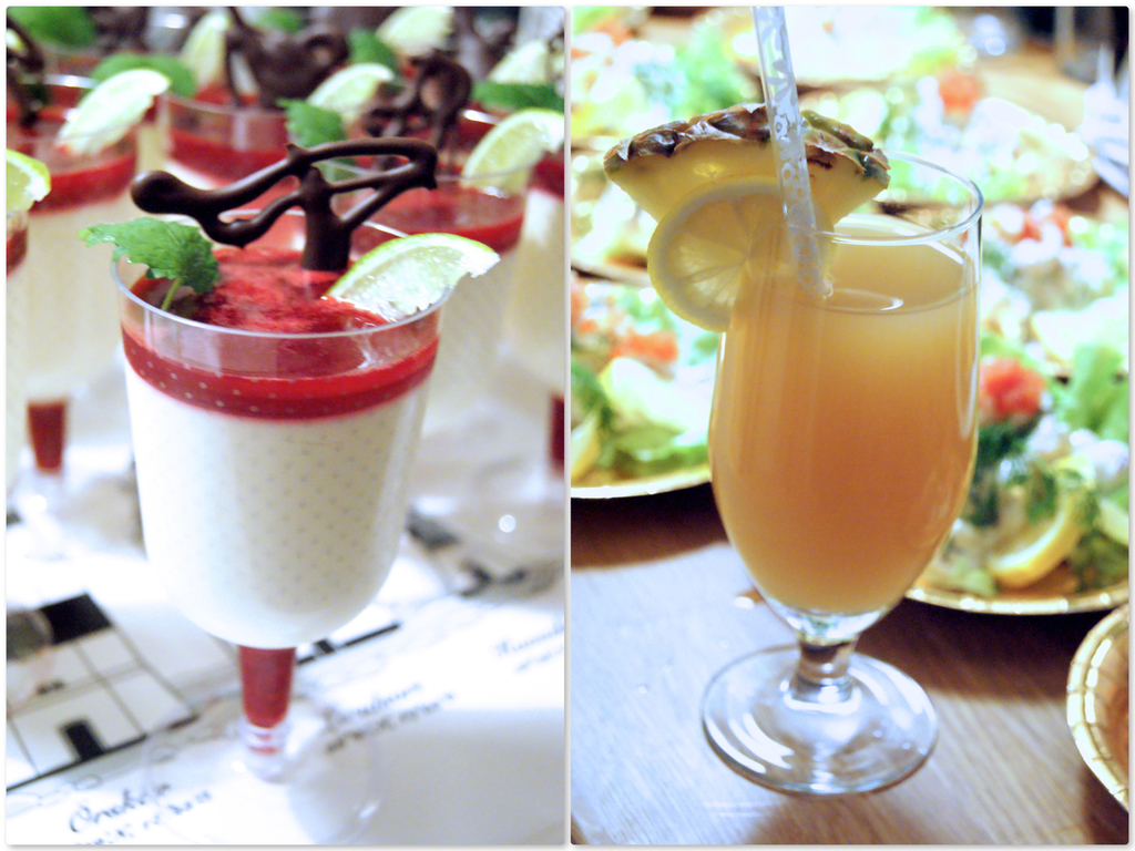 Efterrätt: vit chokladmousse med hallonspegel.